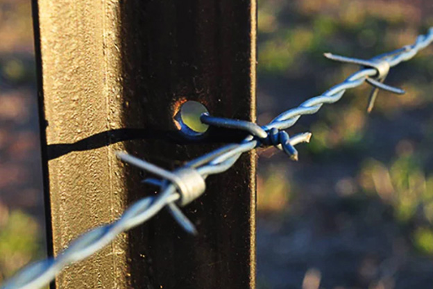 Cada poste possui furos pré-perfurados numa das secções transversais, proporcionando locais para a instalação de arames de alta resistência, bem como para amarrações e grampos de vedação.