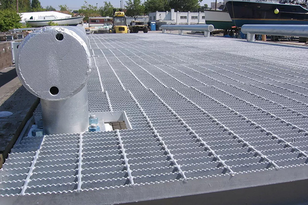 O elemento de grade de aço composto por membros de aço em forma aberta, onde as barras transversais e as barras de suporte são unidas no ponto de intersecção por soldagem e travamento, é chamado de grade de aço. As barras de suporte são barras planas que suportam a maior parte da carga, enquanto as barras transversais são barras compostas por barras torcidas, planas ou redondas e são principalmente barras de conexão que se estendem através das barras de suporte. O comprimento desse tipo de grade é medido pela dimensão do painel da grade, paralelo e na mesma direção das barras de suporte.